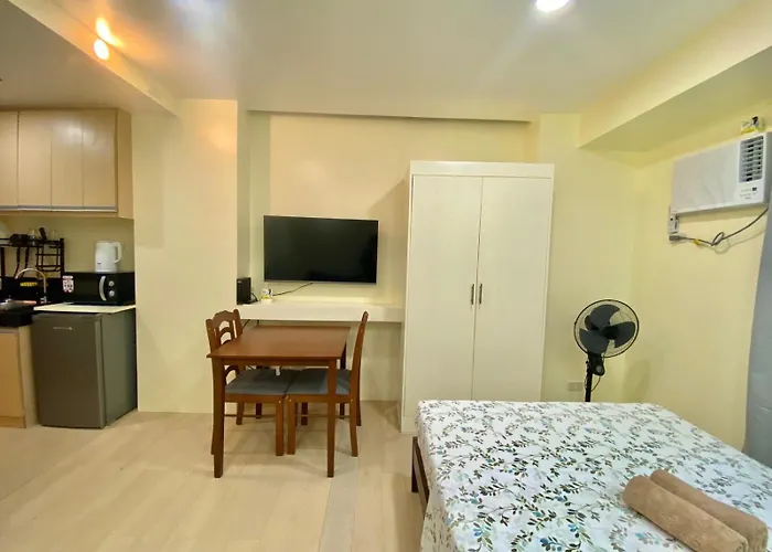 M Place At South Triangleから徒歩でわずか6分の場所に位置する20m²のRhinz Brylle Staycation #9 マニラ市アパートからは、周辺のさまざまな観光スポットへ行きやすいです。 ビジネスやレジャーのお客様のニーズに合わせて、WiFiを提供しています。